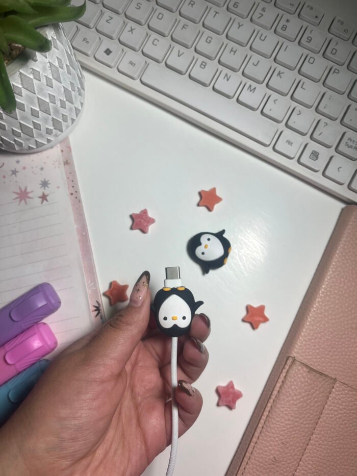 Un Estilo que Enamora Perfecto para los amantes de los animales y de la estética kawaii. El diseño clásico y tierno del pingüino no solo mantendrá tu cable seguro, sino que también le dará un toque de personalidad único, haciendo que sea fácil de encontrar y difícil de confundir.